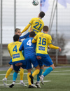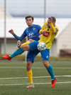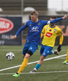 Brynjar Ingi lúðrar boltanum fram á félaga sinn Bjarna sem kemst inn á teig og nær skoti á markið en boltinn framhjá.