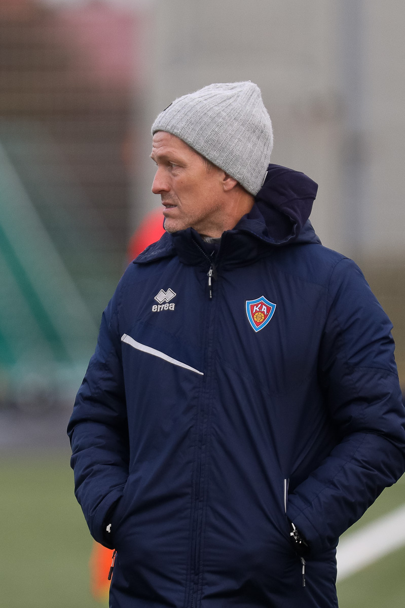 Þetta er farið af stað. Ásgeir Sigurgeirsson á upphafspyrnu leiksins og leikur KA í átt að miðbænum