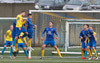 Grótta leikur í sínum hefbundnu bláu búningum og KA eru einnig í sínum hefbundnu gulu og bláu búningum.