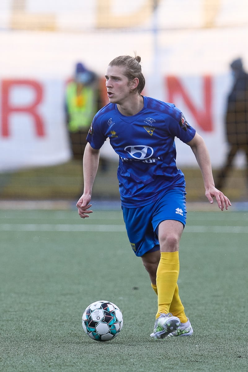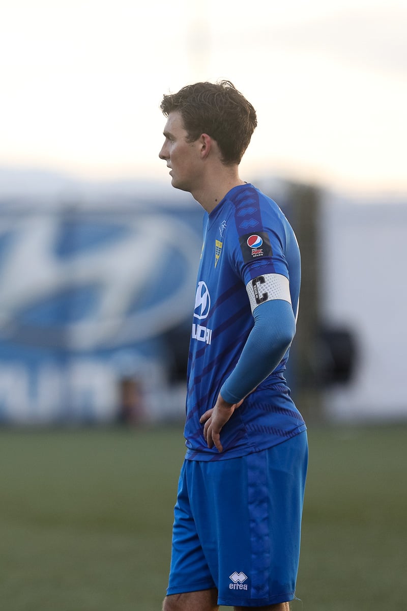 Nökkvi stendur upp og labbar ásamt sjúkraþjálfara KA útaf og leikurinn er farinn í gang aftur.