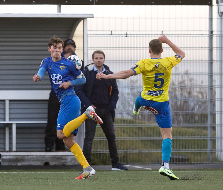 Sigurvin Reynisson fyrirliði Gróttu og Mikkel Qvist varnarmaður KA taka báðir út leikbann hér í dag.