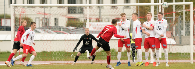 Loftur Páll hreinsar boltann aftur fyrir eftir fyrirgjöf. Afturelding á hornspyrnu.