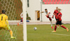 Jakob Franz finnur Alvaro inn á teignum, Alvaro fer framhjá einum varnarmanni og lætur svo vaða en Jon Tena ver og heldur boltanum.