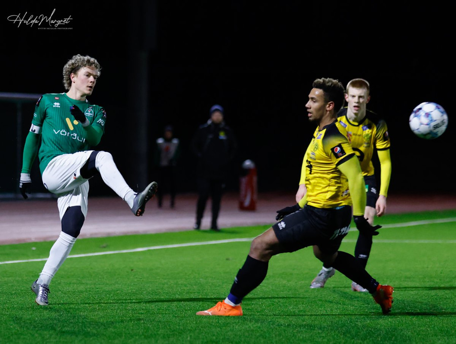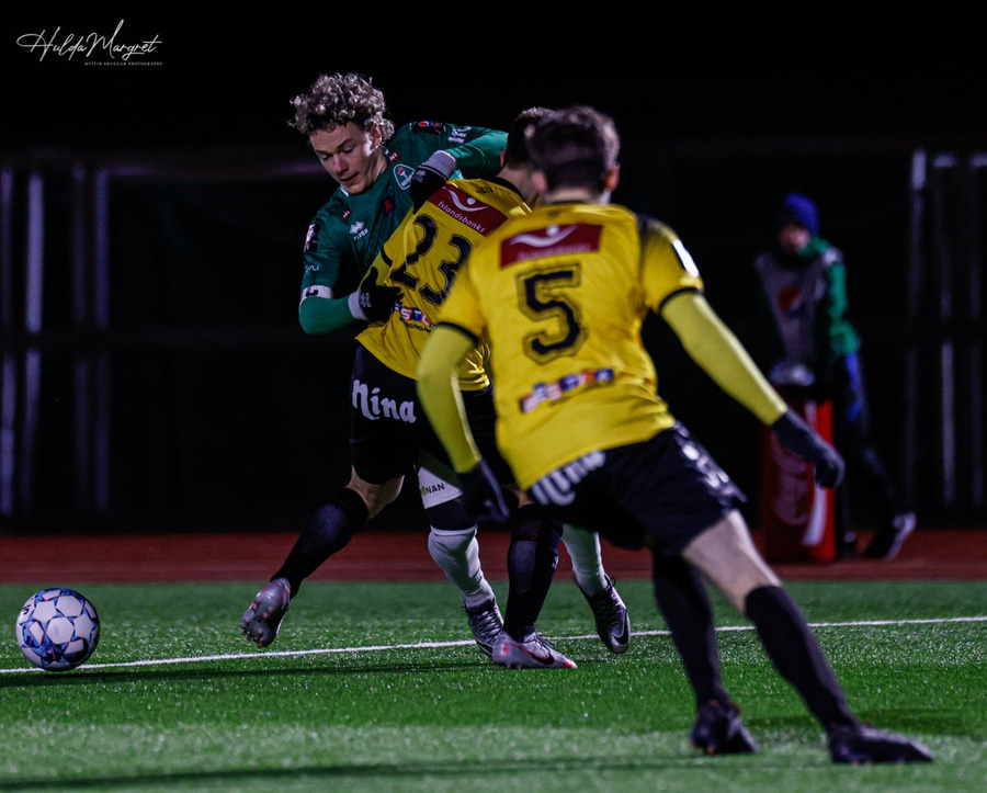 Atli Hrafn Andrason í dauðafæri eftir frábæran undirbúning Brynjólfs. Skotið í hliðarnetið og á Atli að gera mun betur.