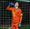 Fer af krafti í Anton Ara sem er mættur út úr teignum til að hreinsa.