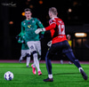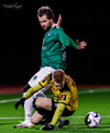 Höskuldur sleppur í gegn vinstra meginn en Árni mætir honum vel og lokar færinu og ver í horn.