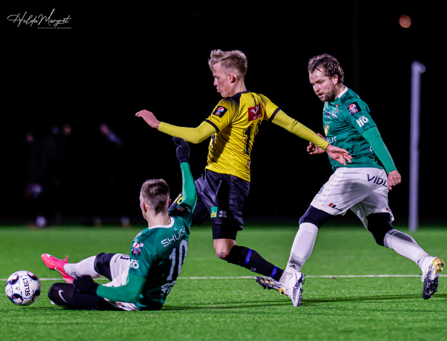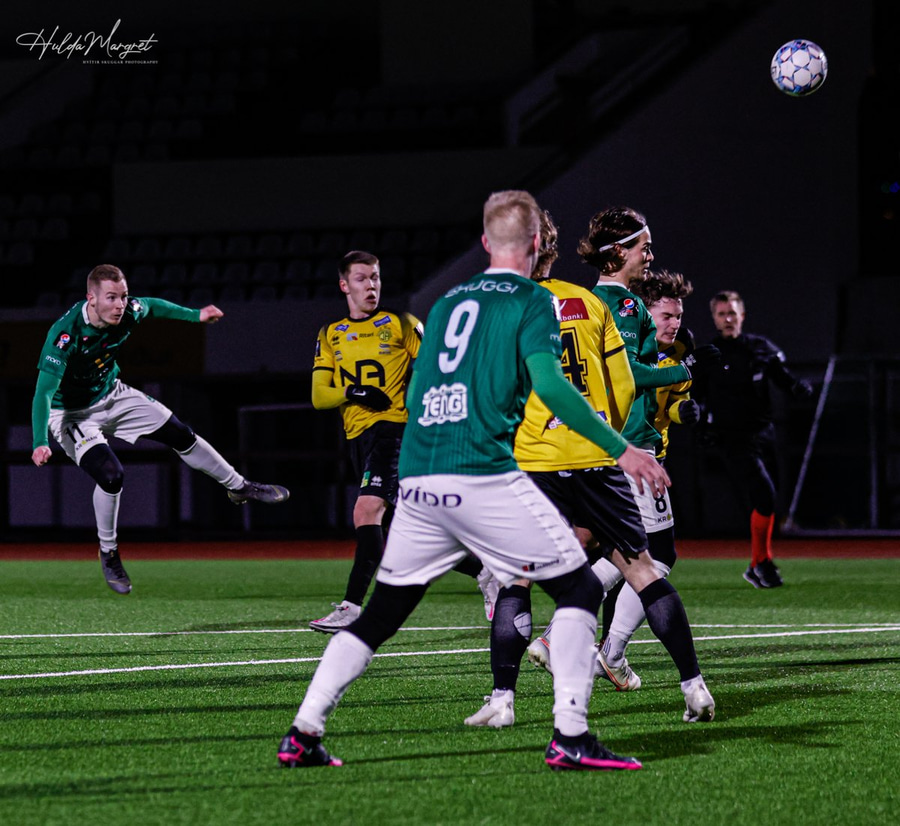 Gísli fær boltann og keyrir upp völlinn, finnur Jason úti hægra meginn sem þræðir boltann aftur yfir á Gísla sem er í fínasta færi en ákveður að leggja boltann frekar yfir á Brynjólf sem er í enn betra færi og þakkar fyrir sig með því að setja boltann í netið,