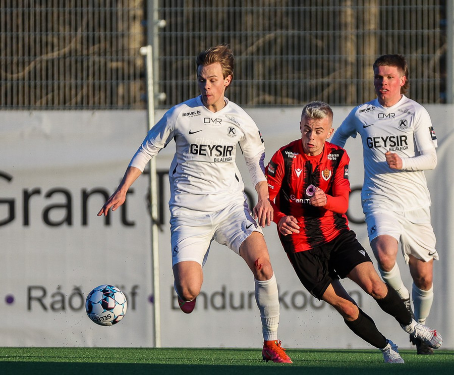 Við það að sleppa í gegn en skot hans beint á Þórð í tvígang. Gestirnir að færast nær.