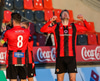 Sindri stálheppinn. Mættur langt út úr markinu og kiksar boltann. Boltinn útfyrir.
