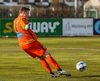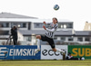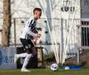 Grímsi tekur spyrnuna sem er vinstra megin við teiginn á fínum stað en spyrnan slök og hreinsuð.