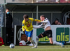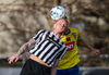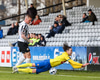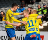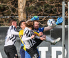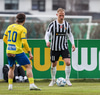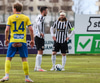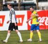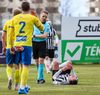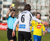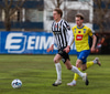 Hrannar liggur eftir og Þorri sparkar boltanum útaf, Hrannar stendur svo upp og gefur Einari merki um að olnbogaskot hafi átt sér stað við litla hrifningu Pálma Rafns.