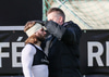Liðin eru að labba til vallar og stúkan klappar vel og innilega.