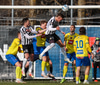 Alex Freyr með skallatilraun yfir markið úr erfiðri stöðu, þetta er ekkert að ganga upp fyrir KR-inga.