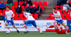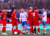 Sander missir boltann útaf við miðju, vill meina að það hafi verið brotið á honum og blótar Arnari dómara á norsku, tungumálakunnáta mín getur ekki þýtt það yfir á íslenskuna.
