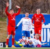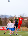 Magnús Þórir með sendingu ætlaða Kristófer en Óskar kemur út úr markinu á síðustu stundu