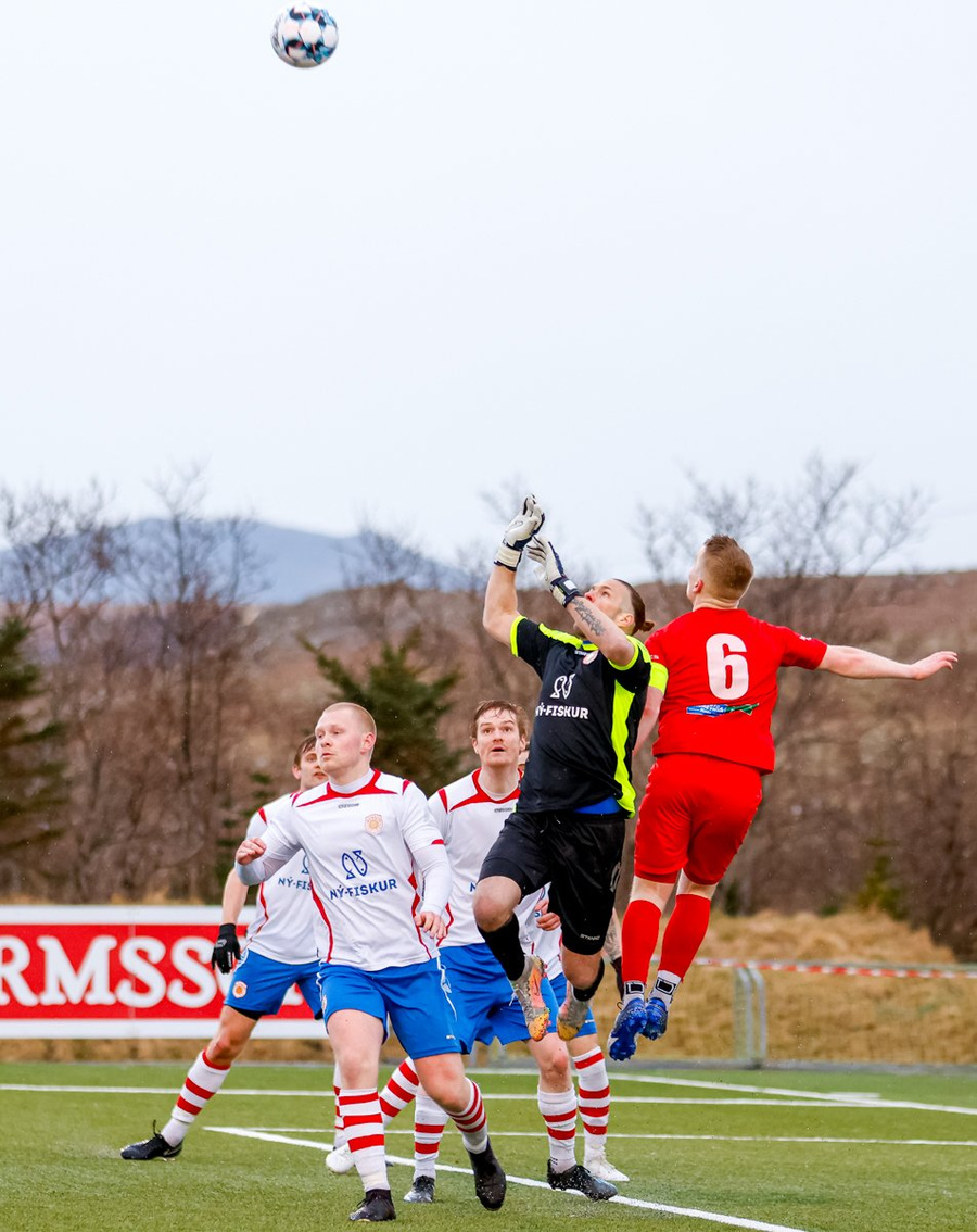 Aron Freyr með góðan sprett og skot sem Rúnar ver í Reynismarkinu, reyndi skot á nær, fljótur Aron þarna