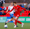 Of seinn í tæklingu á Frosta á miðjum vallarhelmingi Reynis