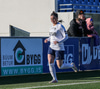 Natasha vill vera meira með boltann. Sækir hann núna niður í vörnina og lúðrar honum fram. Arna Dís skallar þetta í burtu.