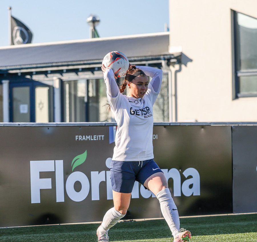 Úlfa Dís skallar upp í þetta innkast Keflavíkur og slær hann. Guðmundi Páli finnst ekkert athugavert við það og Keflavíkurfólkið lætur í sér heyra úr stúkunni