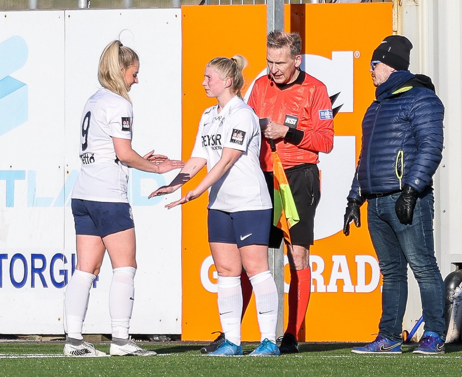 Marín þarf að yfirgefa völlinn og inn kemur Eva Lind