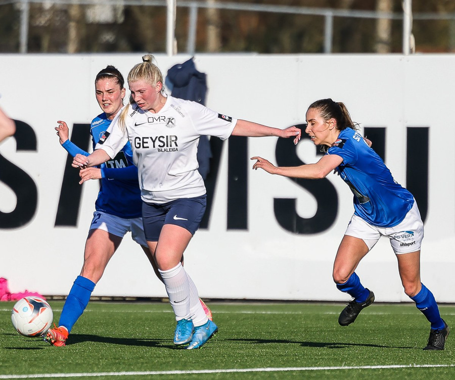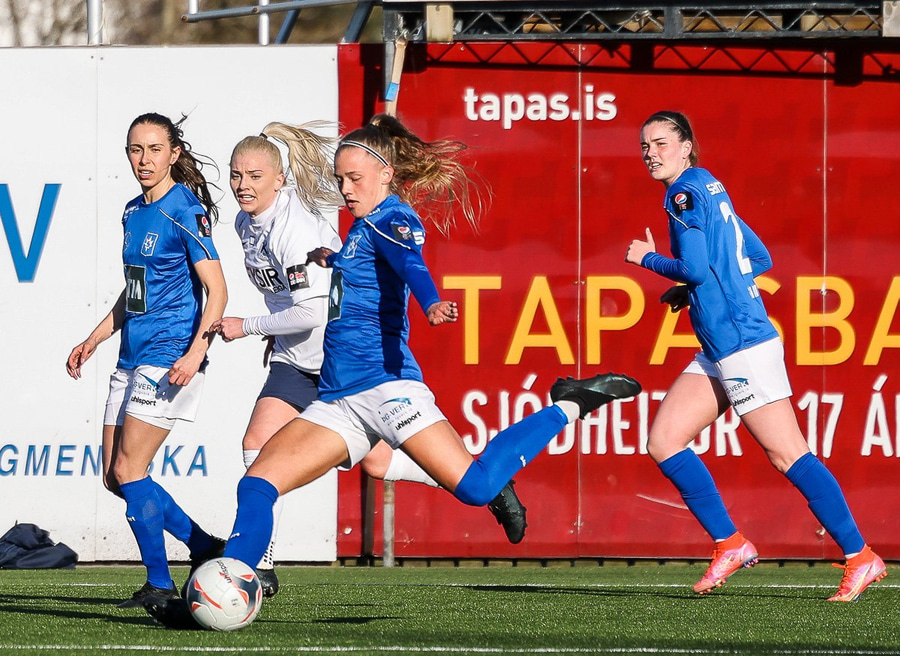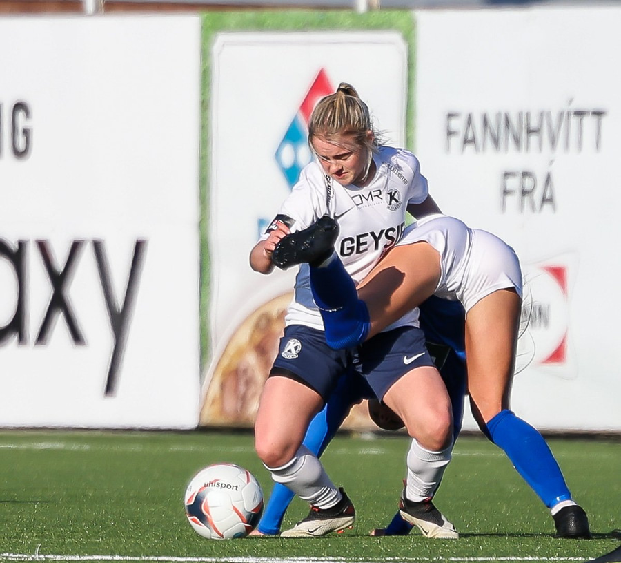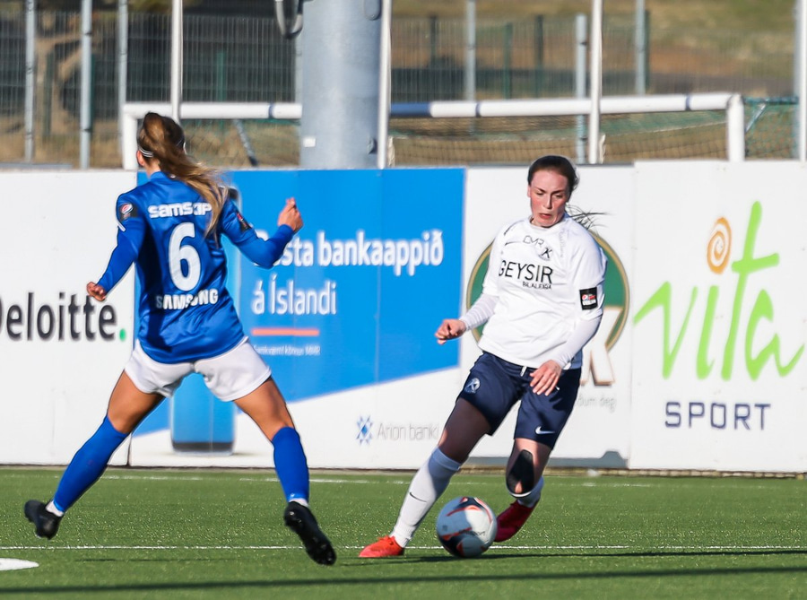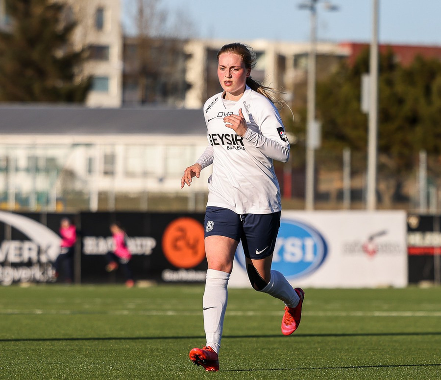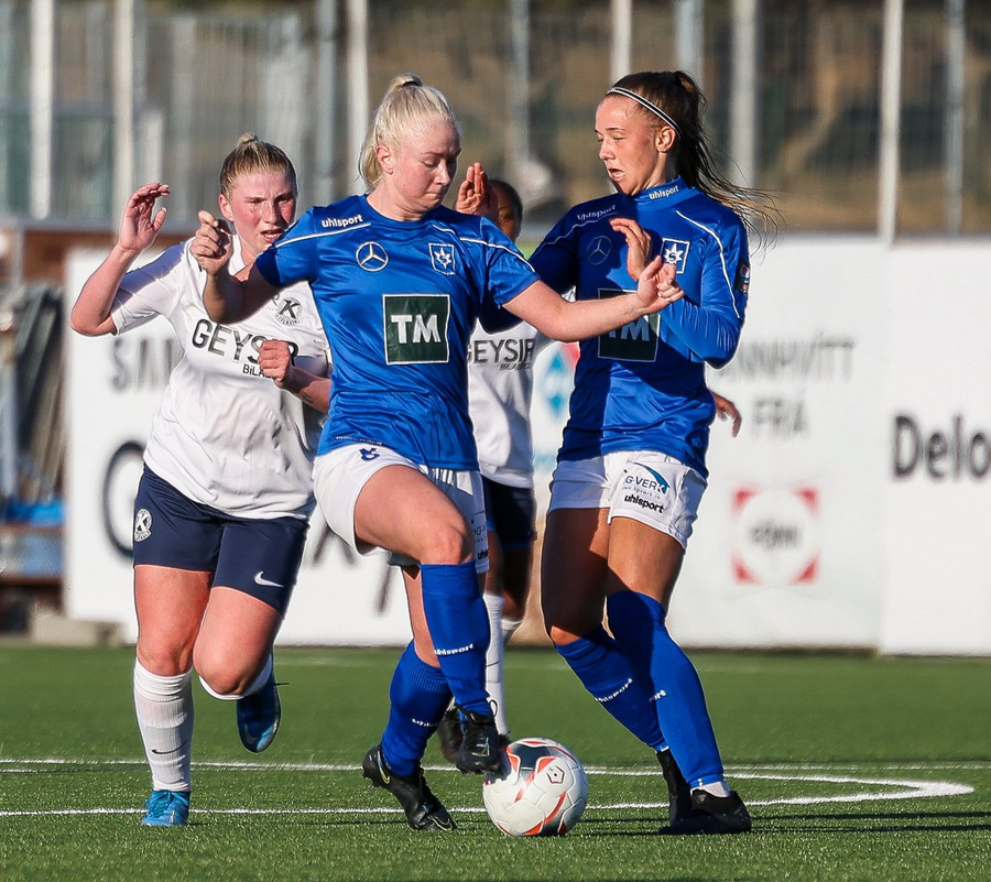 Sædís er með stórhættulegan vinstri fót. Hana langar bara að skora úr þessu en boltinn fer aftur fyrir