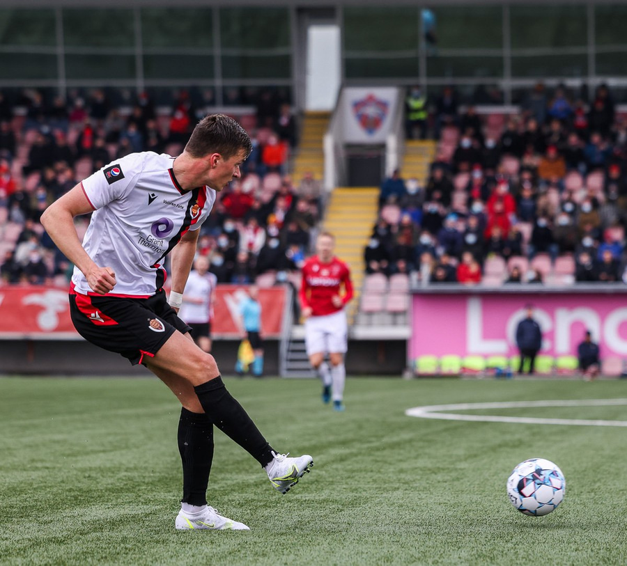 Boltinn kemur fyrir frá vinstri á Kristal Mána sem kemur boltanum á Nikolaj sem klárir vel framhjá Hannesi!!!