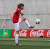Fær boltann inn á teig Valsmanna og kemur sér í skotfæri og lætur vaða en skotið slakt og beint á Hannes.