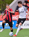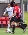 Halldór Jón að koma sér í dauðafæri en Gummi Kristjáns kemst fyrir og bjargar frábærlega. Eggert Gunnþór tapaði boltanum klaufalega í aðdragandanum.