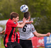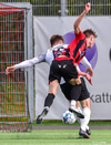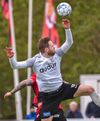 Atli Barkarson reynir fyrirgjöf. Boltinn í Pétur Viðarsson og heimamenn fá sína þriðju hornspyrnu.