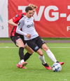 Guðmann í brasi og Helgi Guðjónsson brunar upp en á ekki nægilega góða sendingu.