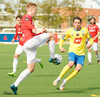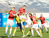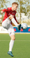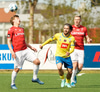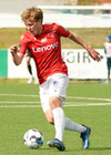 Tekin stutt, endar hjá Hendrickx sem á sendingu fyrir. Þar stekkur Elfar manna hæst og skallar boltann í stöngina.