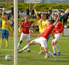 Hallgrímur Mar tekur aukaspyrnu frá hægri. Sendir boltan fyrir en Rodri skallar boltann upp í loftið, auðvelt fyrir Hannes að grípa.