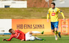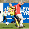 Kristinn Freyr með hörkuskot sem fer beint í Brynjar Inga sem liggur eftir. Það er í lagi með hann og hann heldur leik áfram.