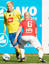 Birkir fær gult fyrir hressilega tæklingu á Ásgeir Sigurgeirsson