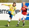 Ásgeir Sigurgeirsson komst í gott færi en Hannes sá við honum og varði í horn, ekkert varð úr horninu.