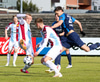 Sindri Þór með lúmska fyrirgjöf í svæðið milli varnar og markmanns. Kian tekur hlaupið en er í númeri of litlum skó til að ná til boltans.