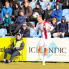 Einn á einn gegn Guy sem er mættur 30 metra út úr markinu en Ari reynir að skjóta í stað þess að fara fram hjá honum. Setur boltann beint í Guy fyrir framan sig.