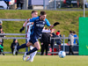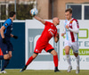 Máni Austmann fær boltann óvænt í teignum eftir langan bolta fram en nær ekki valdi á boltanum og skot hans beint á Sindra.