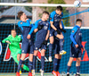 Kian með fyrirgjöf frá vinstri sem Gibbs skallar rétt framhjá.