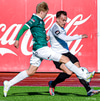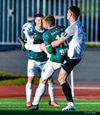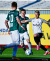 Nú þarf Hjörtur Logi að fara af velli vegna meiðsla og Pétur kemur inn í hans stað og Hörður Ingi færir sig í vinstri bakvörðinn!