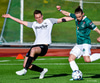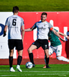 Höskuldur tekur hana, spyrnan er mjög fín á nærsvæðið og þar kemur Damir á fleygiferð en á fastann skalla langt yfir markið...
