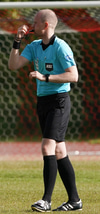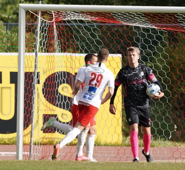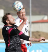 Löng sending fram. Zeba nær að skalla boltann en Auðunn á ekki í vandræðum með að grípa boltann.