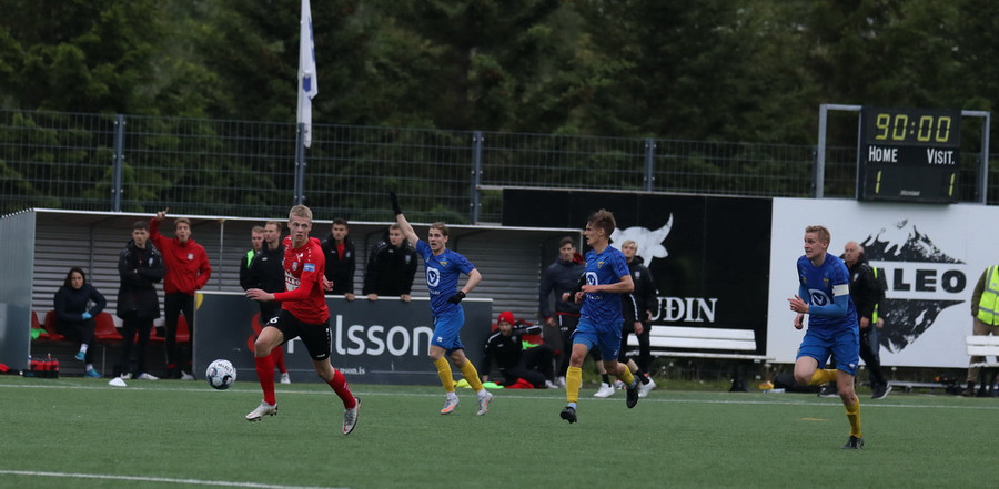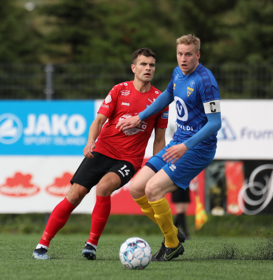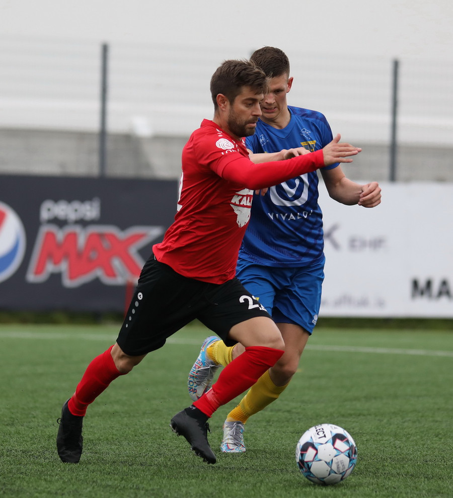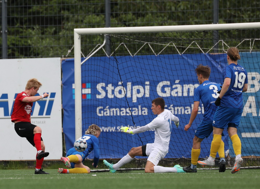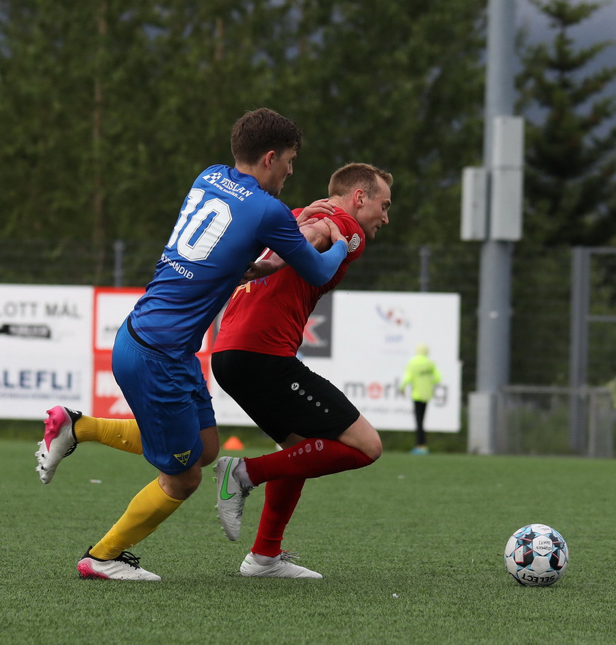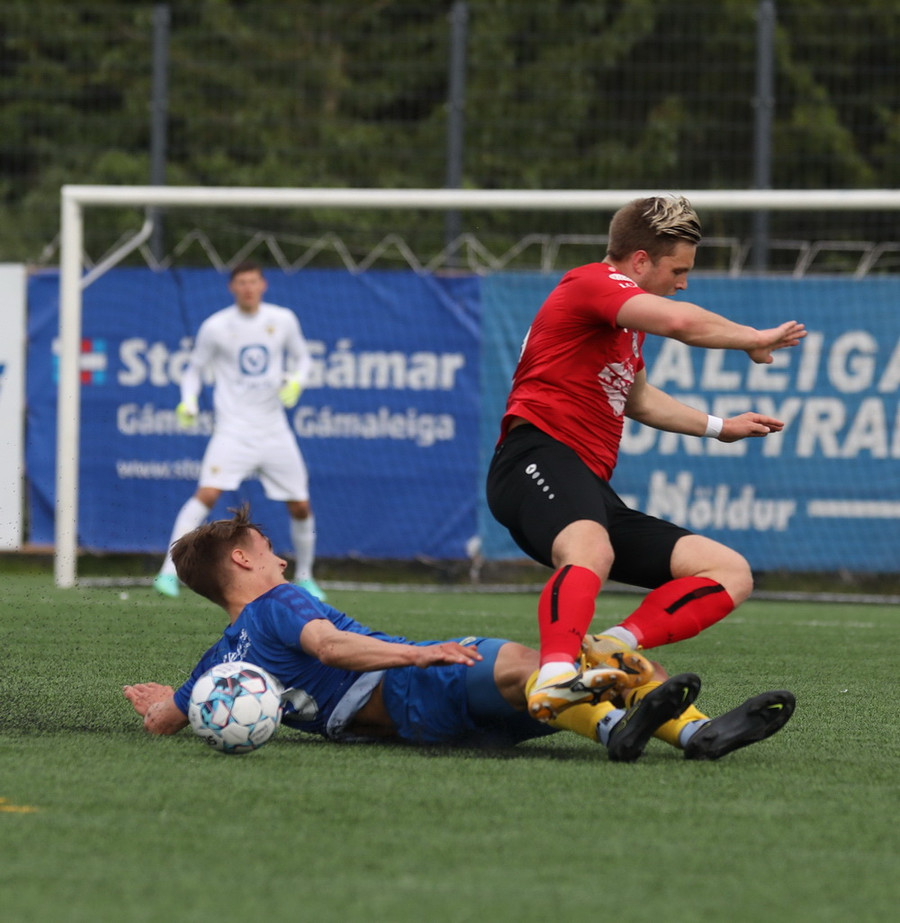 Kristófer Óskar hársbreidd frá því að komast í dauðafæri en frábær tækling í vítateig gestanna.