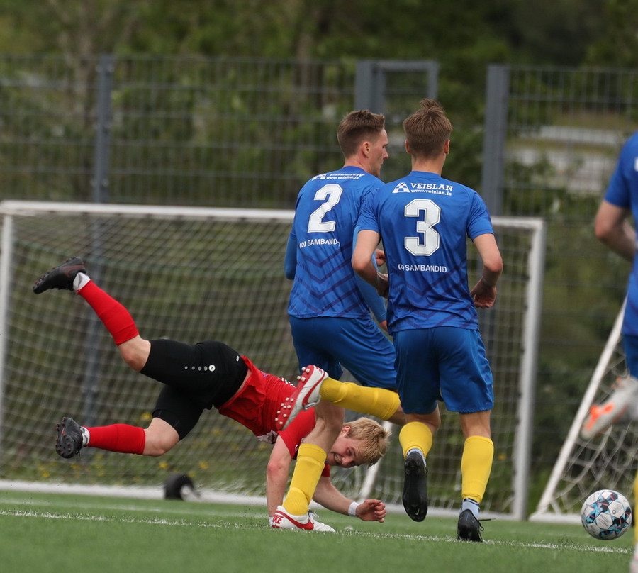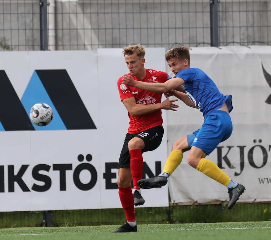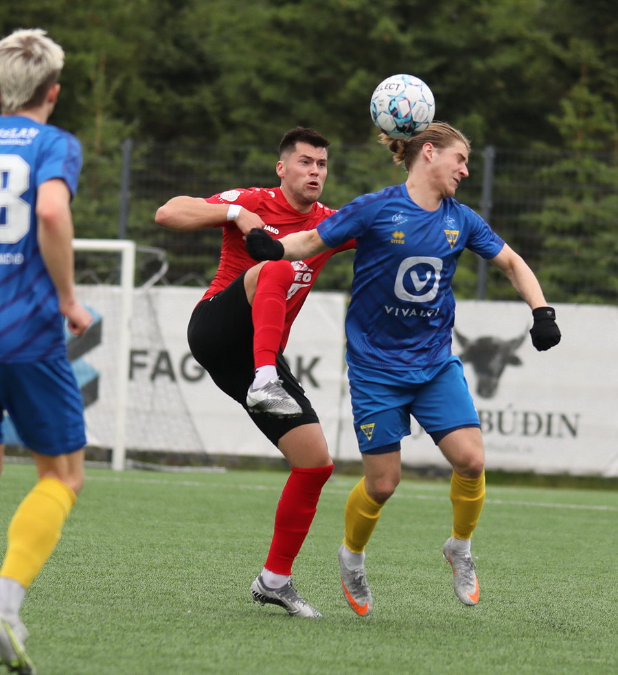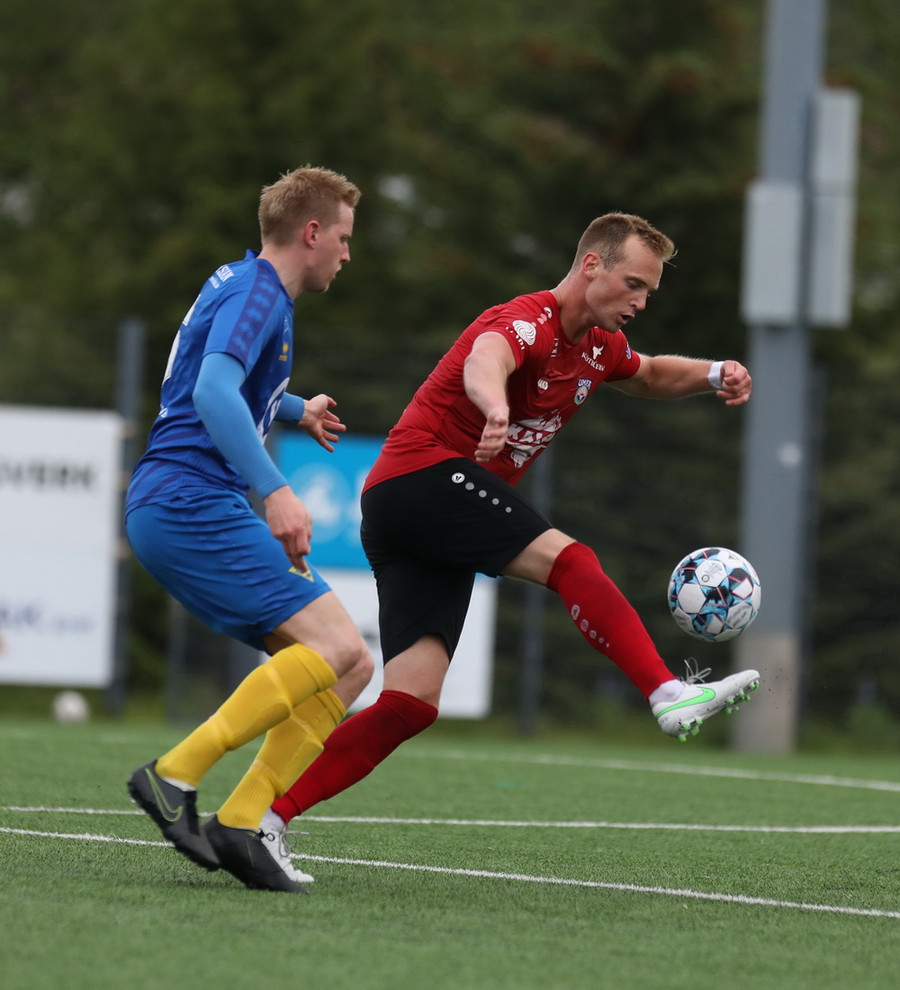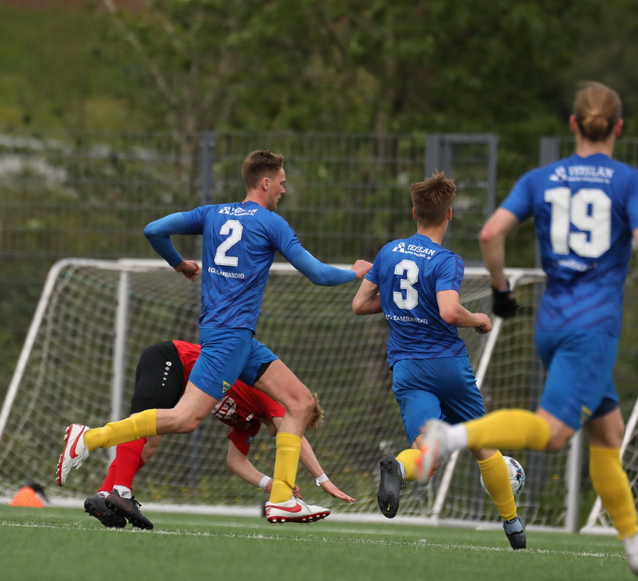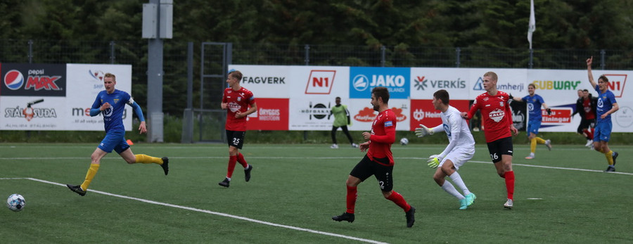 Kristófer Óskar hársbreidd frá því að komast í dauðafæri en frábær tækling í vítateig gestanna.