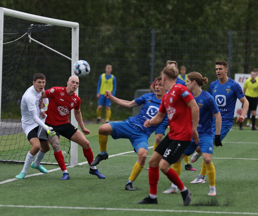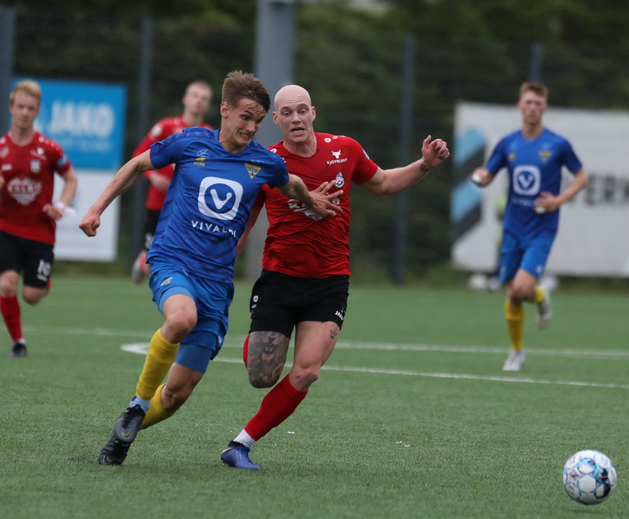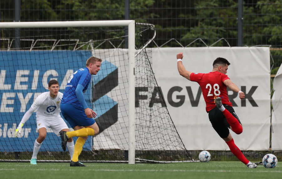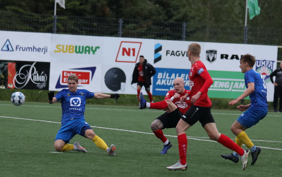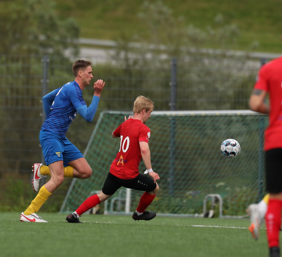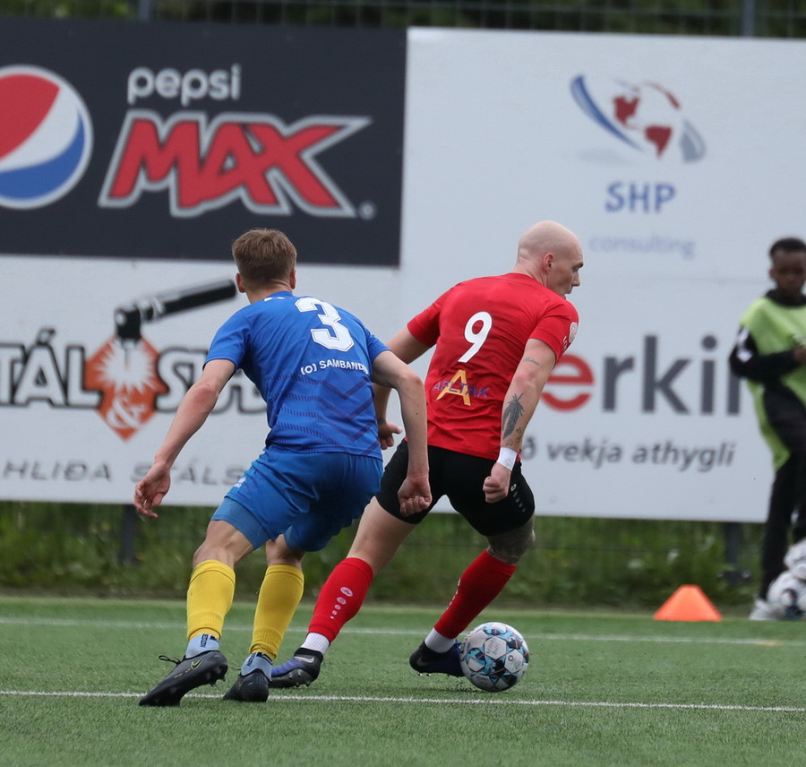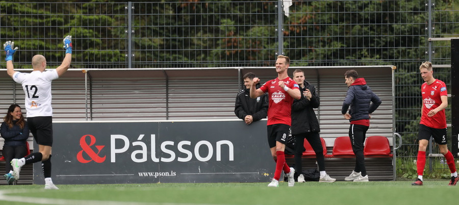 Kristófer Óskar hársbreidd frá því að komast í dauðafæri en frábær tækling í vítateig gestanna.