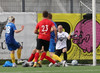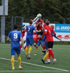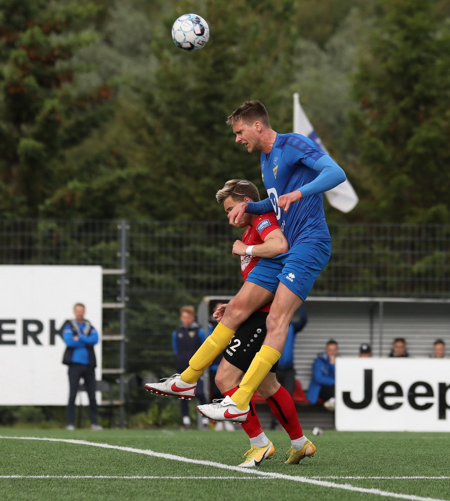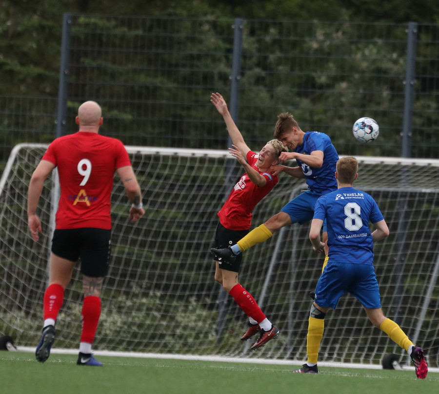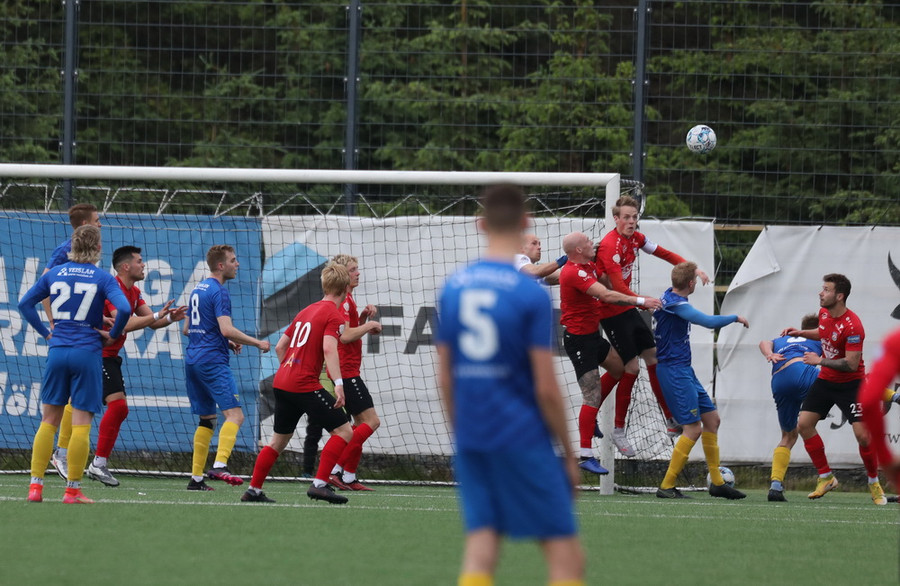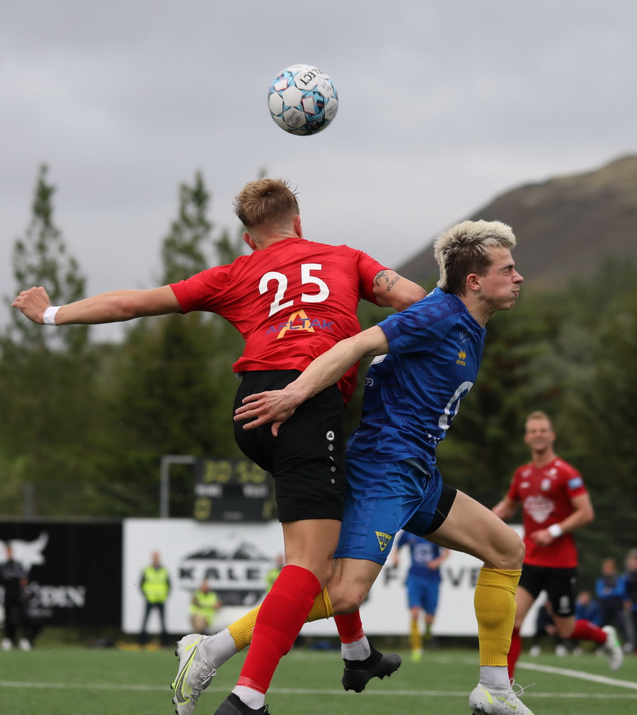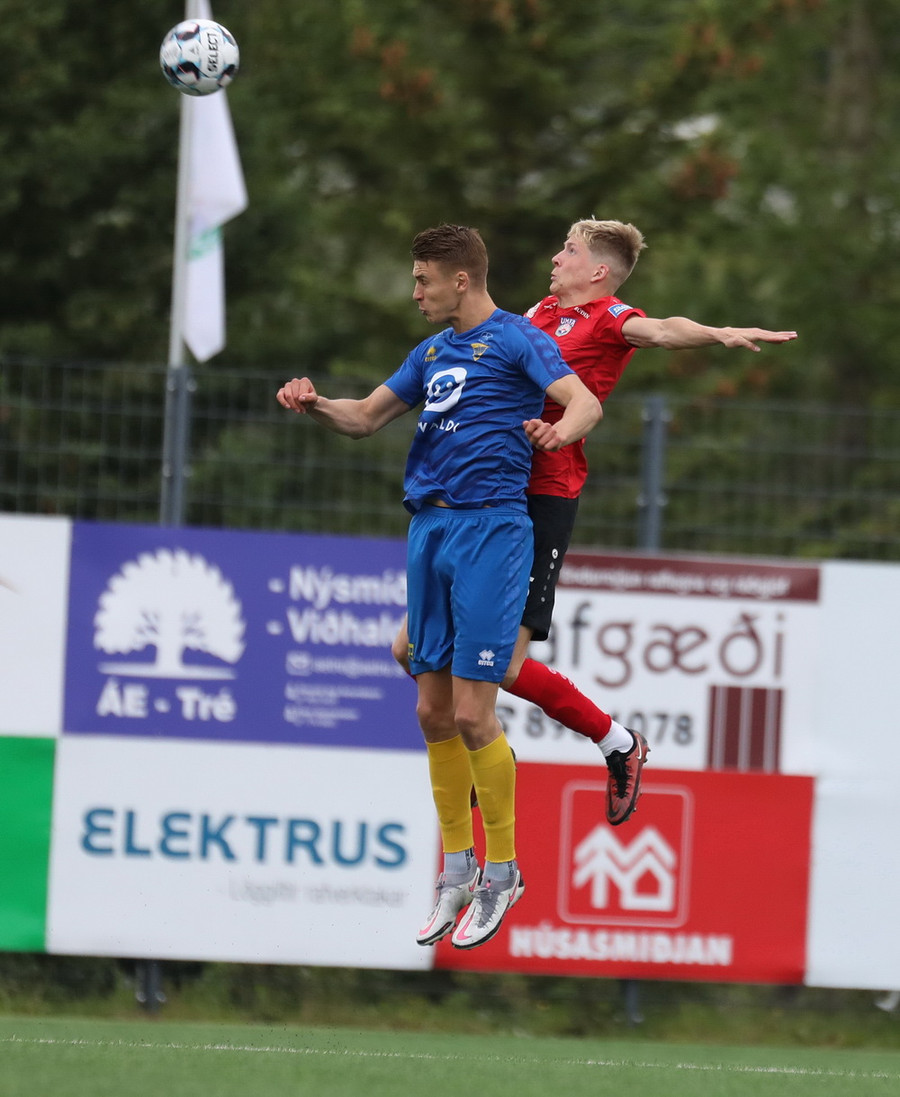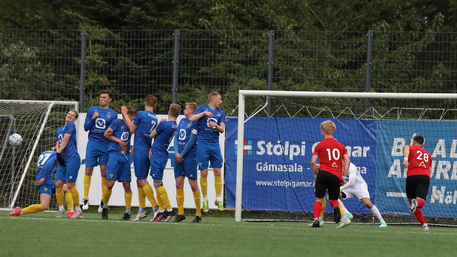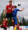 Arnór Gauti með skalla eftir fyrirgjöf frá Valgeiri. Boltinn vel framhjá markinu.