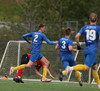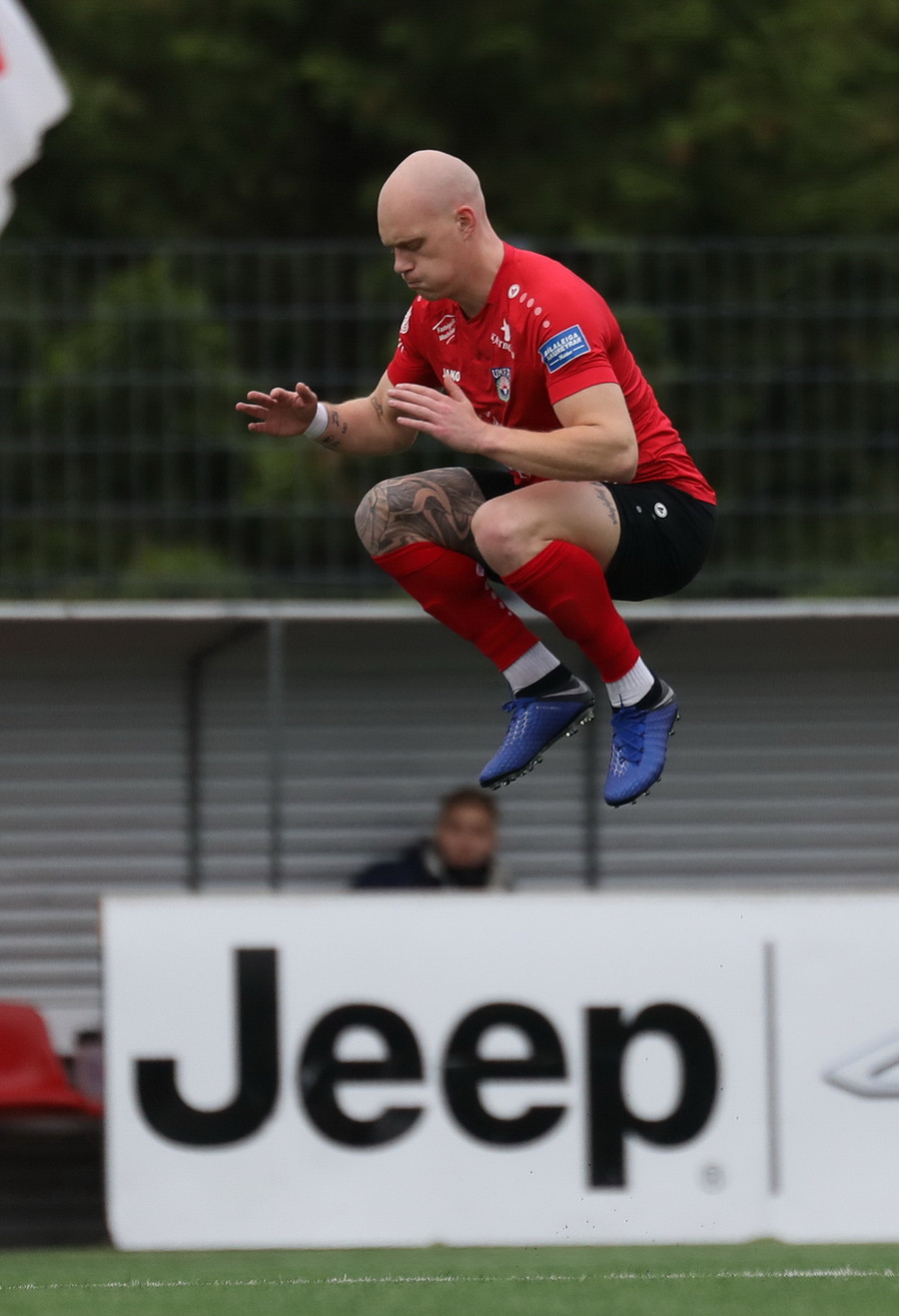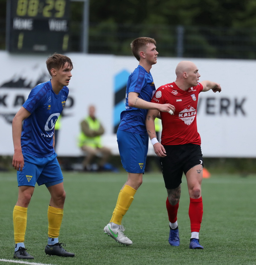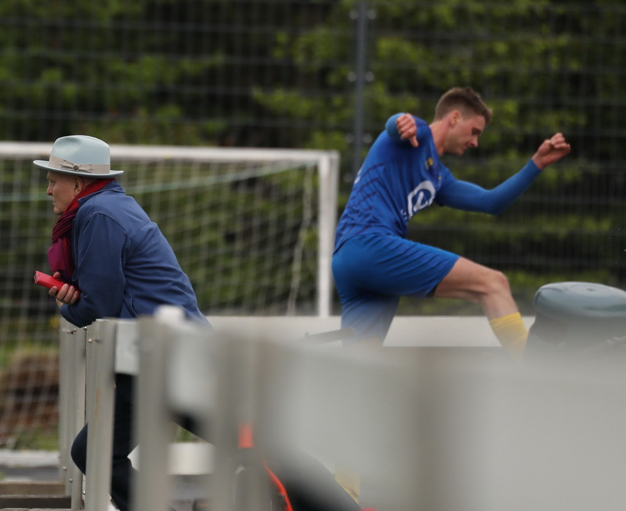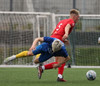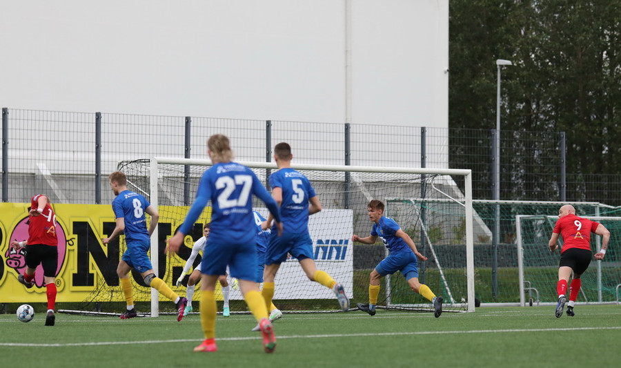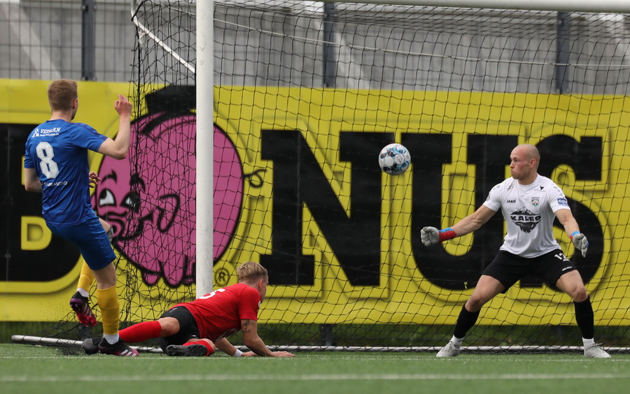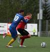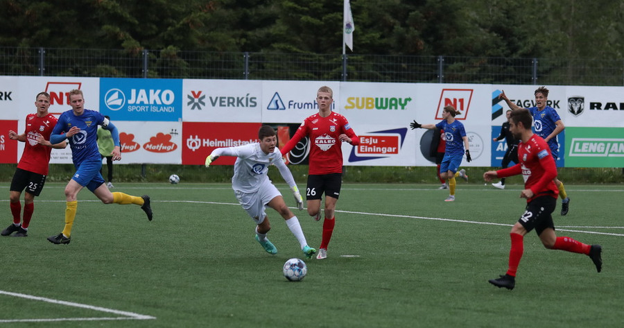 Valgeir leggur boltann út á Georg eftir flotta skiptingu. Georg á skot hátt yfir markið.