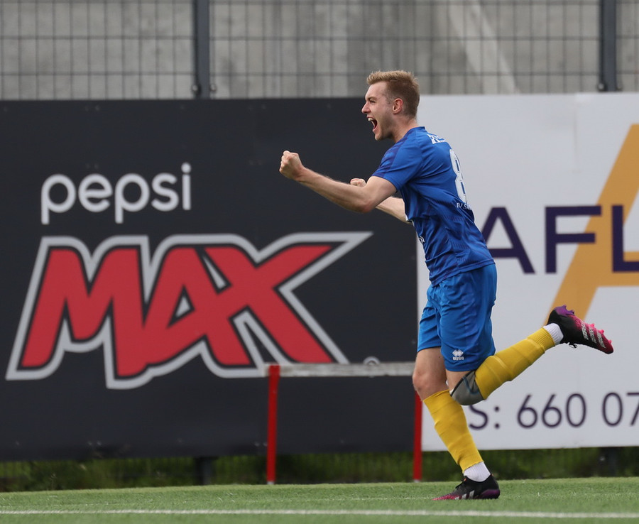 Gott spil og endar á bolta á Kristófer inn í teiginn. Hann leggur boltann út á Kristján sem á skot í varnarmann og í markið!