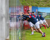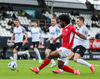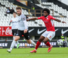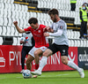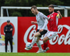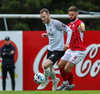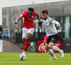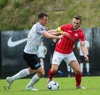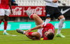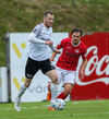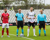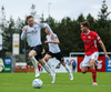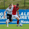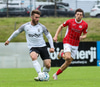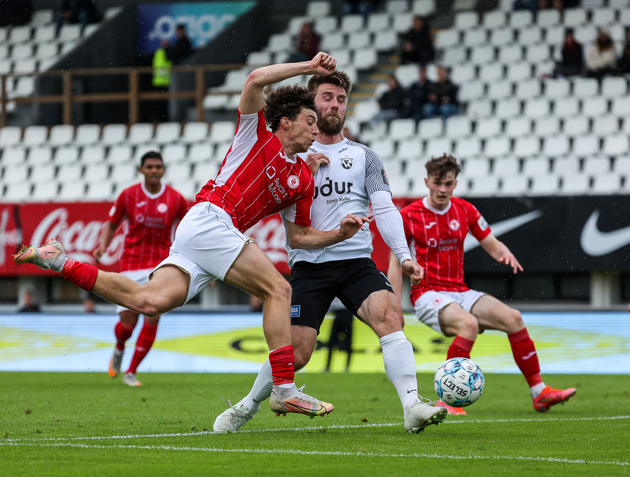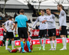 Lennon vinnur boltann af Bolger á miðjum vellinum en dómari leiksin dæmir brot sem vakti enga hrifningu heimamanna.