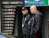 FH-ingar vilja vítaspyrnu!!! Stuðningsmenn baula duglega á dómara leiksins og þeir Óli og Davíð ræða við fjórða dómarann.